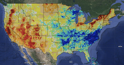 The latest Palmer Index shows the excessive wetness and soil moisture has increased a bit from the Oaarks to the Mid Atlantic coast when compared to the March 26 values. Wetness has increased a bit from Nebraska to Wisconsin.